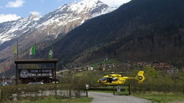 Elisoccorso in azione a Valbondione nel primo pomeriggio di domenica 25 aprile.