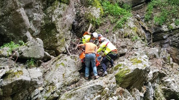 Stefano Lamera precipitato per una quindicina di metri. Il cadavere è stato recuperato e portato nella piazzola della Protezione civile ad Albino per il riconoscimento da parte dei famigliari.