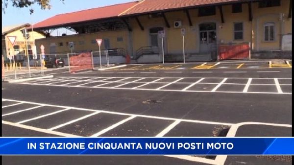 Dopo l'abbattimento del muro di cinta a fianco della biglietteria sono pronti 50 nuovi posteggi per le motociclette in stazione e intanto anche il parcheggio a pagamento comincia a essere più utilizzato.
