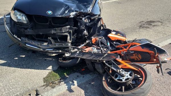 L’impatto con un’auto guidata da una giovane donna all’ottavo mese di gravidanza. Sul posto l’Elisoccorso da Bergamo.