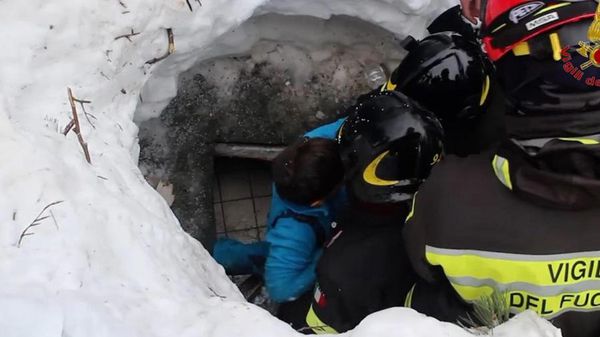 Le urla di gioia dei vigili del fuoco, sfiniti, sono il primo suono udito da una donna e dal suo bimbo, estratti vivi dall’hotel Rigopiano sommerso dalla neve.