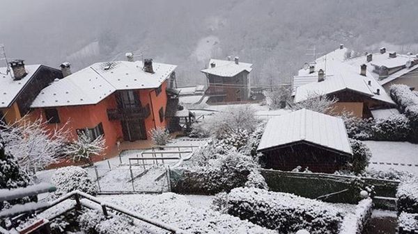 Ha cominciato a nevicare in Alta Val Seriana e anche in Val Brembana. Prati e tetti imbiancati.