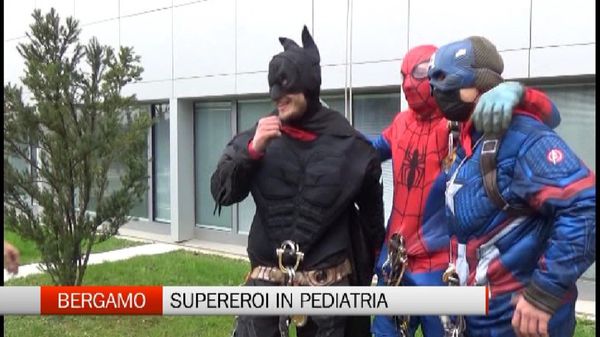 Supereroi ospiti ieri dell'ospedale Papa Giovanni.