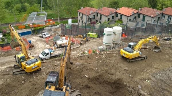 Proseguono i lavori al cantiere del parcheggio di via Fara. Concluso il collaudo della teleferica che consentirà di movimentare i materiali evitando il passaggio per il centro città e Bergamo Alta.