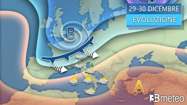 LE PREVISIONI. Iniziali condizioni anticicloniche sull’Italia poi intenso peggioramento entro la Befana.