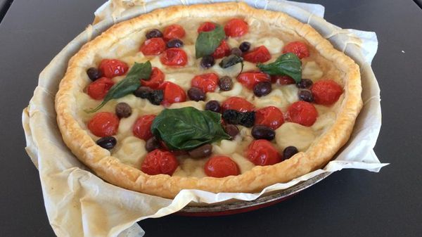 Ecco una ricettina supersprint, buona e bella da vedere. Una sfogliata napoletana con pachino e mozzarella di bufala.