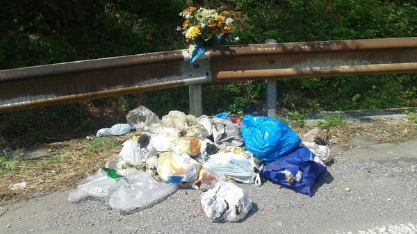 Una fotografia scattata lungo la strada provinciale 35 all’altezza di Alzano Lombardo racconta l’inciviltà di chi abbandona i rifiuti. Un’inciviltà che in questo caso è ancora più grave: nel punto in cui sono stati gettati i sacchetti, infatti, ci sono dei fiori a ricordo di una persona morta in un incidente stradale.