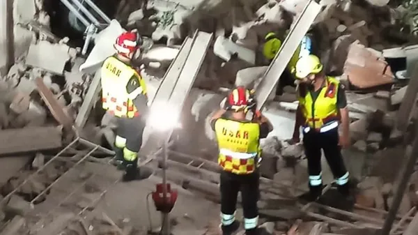 IN CENTRO. Il crollo di un edificio in ristrutturazione per una probabile fuga di gas: in azione sei unità speciali Usar e l’unità cinofila di ricerca persone da Bergamo.