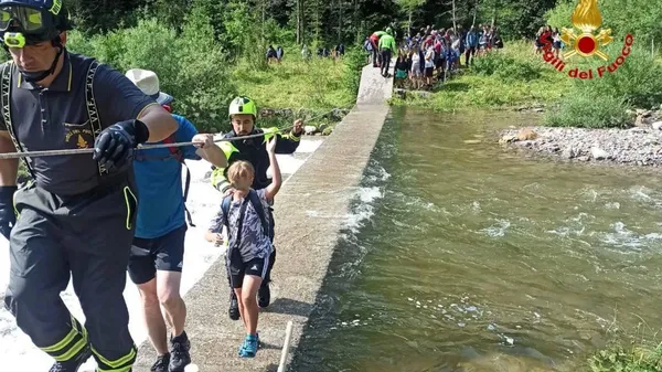 VALBONDIONE. Al ritorno da una gita coi Cre a Lizzola sorpresi dal torrente Bondione che si era gonfiato d’acqua per le piogge: salvati dal Soccorso alpino.