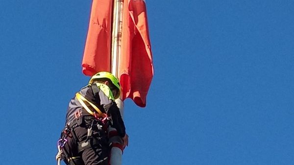 Un uomo del reparto Saf si arrampicato per diversi metri per riuscire a srotorarla.