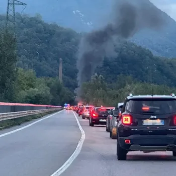 LE CODE. Un mezzo ha preso fuoco per cause in fase d’accertamento. Senso unico alternato nel tratto interessato, dall’uscita della galleria Montenegrone a Pradalunga.