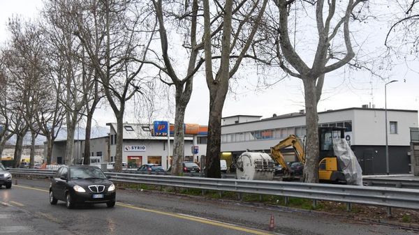 Code in via delle Valli nella mattinata di giovedì 5 aprile: il cantiere antiallagamento, che limita la viabilità, è agli sgoccioli. Í