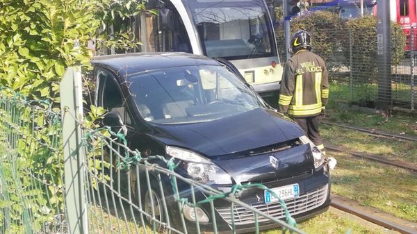 Spavento venerdì 5 marzo in via Martinella verso le 13,50 per uno schianto che fortunatamente non ha avuto conseguenze se non parzialmente sulla circolazione dei tram.