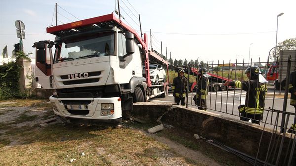 Una bisarca, un autotreno adibito al trasporto di autoveicoli, ha abbattuto il muretto di recinzione di una casa con annesso bar-tabaccheria venerdì alle 14,20 all’incrocio tra via Zanica e via Campagnola a Bergamo. Circolazione in tilt per tre ore.
