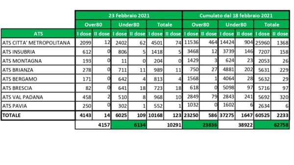 I dati delle vaccinazioni anti-Covid in Lombardia e nella Bergamasca. Martedì somministrate 4.157 mila dosi nel territorio regionale agli over 80. Le adesioni hanno superato il mezzo milione: sette anziani su 10 si sono prenotati.