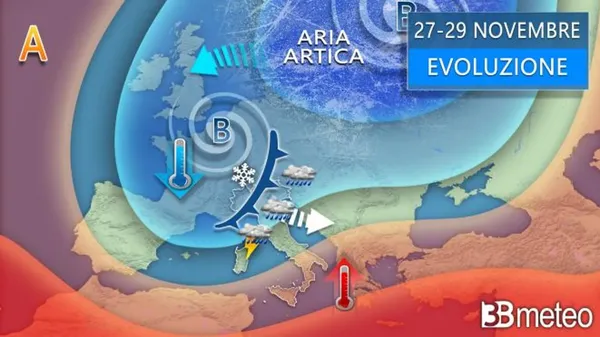 PREVISIONI. Gli esperti di 3bmeteo: «Attese due nuove perturbazioni con piogge e neve sui rilievi, localmente a bassa quota. Tra lunedì e martedì in particolare su Centro Sud e Nord Est, tra giovedì e venerdì più corposa sul Centro Nord».