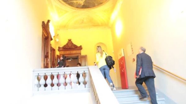 Un mercoledì mattina in Carrara. Alle dieci, un’ora dopo l’apertura, nell’atrio incontriamo una coppia di francesi arrivata di buon’ora, una scolaresca accompagnata da una guida, marito e moglie con un cane monumentale che si danno il cambio per visitare la pinacoteca, e nelle sale un via vai di visitatori.