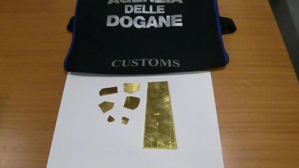 Il valore stimato sfiora i 34 mila euro. La scoperta dell’Agenzia delle Dogane con la Guardia di Finanza. L’accusa: il metallo prezioso non era dichiarato.