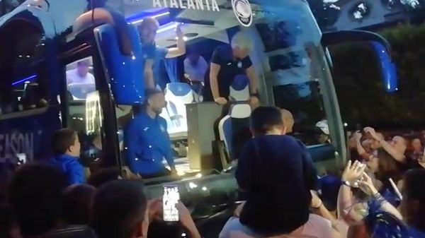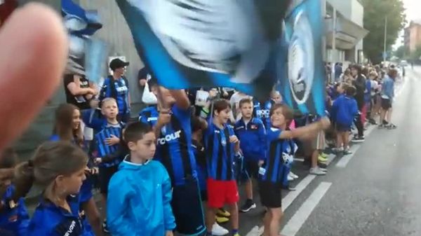 I tifosi atalantini in festa per l’arrivo del pullman nerazzurro
