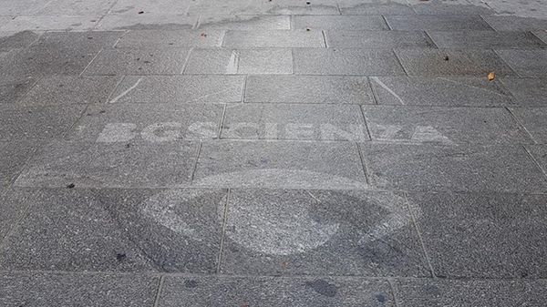 Un guizzo ingegnoso per mostrarsi alla città senza deturparla con pubblicità invadenti. Anzi, addirittura pulendola.