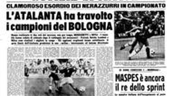 Domenica 13 settembre 1964 era una giornata afosa e, per la prima di campionato, si presentava a Bergamo nientemeno che il Bologna, fresco di scudetto. E, di certo, non poteva passare inosservato, lo scudetto che occupava buona parte della maglia rossoblù.