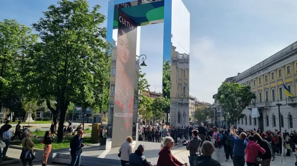 BGBS 2023. Ecco TheGate2023, il portale che connette Bergamo e Brescia, dando luogo a una sorta di varco digitale tra le due città grazie a schermi video e trasmissioni in live streaming. Una struttura identica è in Piazza della Vittoria a Brescia. Il tutto per Bergamo Brescia Capitale della cultura 2023.