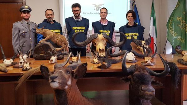 Il Corpo forestale dello Stato sequestra trofei di caccia provenienti da safari africani e messi in vendita su siti di annunci online. Gnu, bufali, antilopi ed un raro felino africano tra gli esemplari . Denunciato e sanzionato il proprietario.