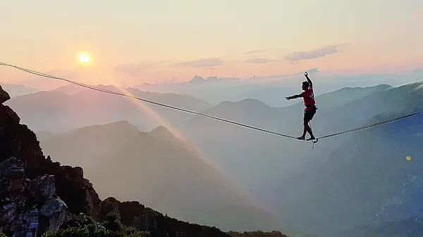OLTRE IL COLLE. La camminata di tre amici sopra la prima linea «alpina» delle Orobie: 55 metri di fettuccia sulla vallata che scende a Pian della Palla.