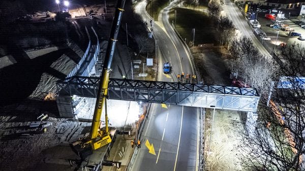 Bergamo. Il collegamento ciclopedonale, realizzato nell’ambito di Chorus Life, è stato posato mercoledì notte tra via Serassi e via Gleno. Le immagini del cantiere.