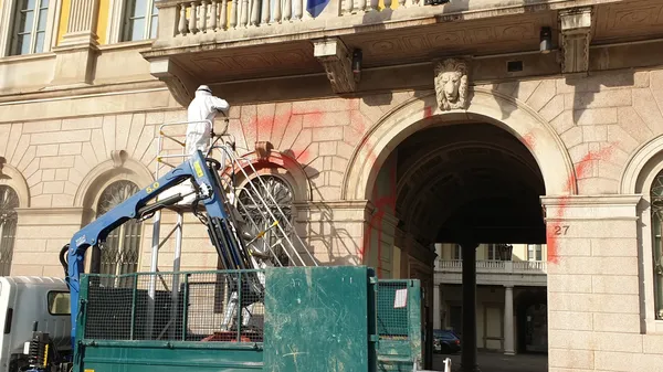 Bergamo, Palazzo Frizzoni vandalizzato con scritte no vax: in azione almeno 4 persone - Foto e video