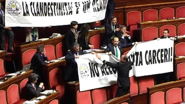 I consiglieri regionali lombardi della Lega Nord hanno esposto alcuni cartelli con la scritta «Clandestino è reato» e urlato «Vergogna!» durante la seduta in aula al Pirellone. Analoga protesta anche a Roma nell’aula del Senato, a Palazzo Madama.