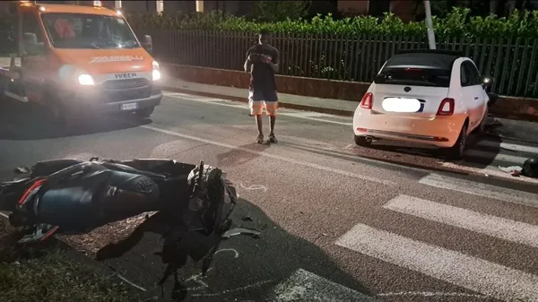L’INCIDENTE. Lo scontro con un furgone nella tarda mattinata di sabato 9 agosto: a bordo della moto anche la cagnolina rimasta illesa. Il centauro trasportato all’ospedale Papa Giovanni in elisoccorso.