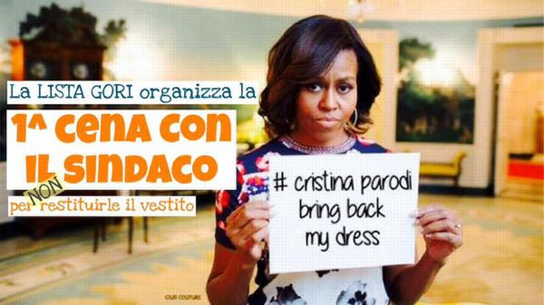 L’abito di Cristina Parodi, lo stesso scelto da Michelle Obama per la seconda elezione del marito Barack, continua a far parlare di sè. La lista Giorgio Gori Sindaco lo mette all’asta. Ovviamente per «gentile concessione della signora Parodi» fanno sapere gli organizzatori.