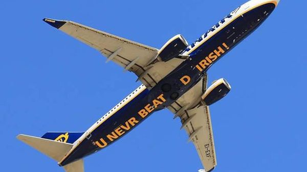 «U never beat d irish!» sulla pancia dell’aereo, così per essere sicuri che in qualsiasi memento il messaggio possa essere letto.