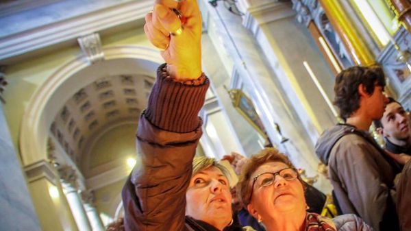 «Con grande gioia posso annunciare che il segno si è manifestato». Legge l’annuncio del vescovo di Bergamo Francesco Beschi mons. Pelucchi e la gioia dei fedeli si trasformare in un fragoroso applauso.
