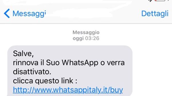 Molti utenti di WhatsApp stanno ricevendo uno strano messaggio sms che li invita a rinnovare il servizio per non vederlo disattivato