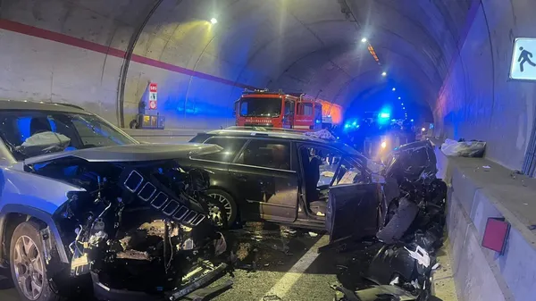 Grave schianto nella galleria Monte di Zogno: strada chiusa, 5 feriti