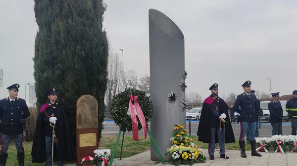 Nemmeno la neve caduta abbondante la notte precedente è riuscita ad attutire il ruggito del traffico fuori dal casello autostradale di Dalmine. Ma forse, per commemorare due giovani uomini morti perché stavano facendo il proprio dovere, il silenzio non è abbastanza.