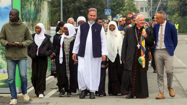 Il cammino Sono stati i ragazzi delle scuole a raccontare il quartiere divenuto «laboratorio di comunità» Le voci di diverse religioni: «Il mondo è giunto qui». Il Vescovo: «L’impegno per la pace ci coinvolge tutti»