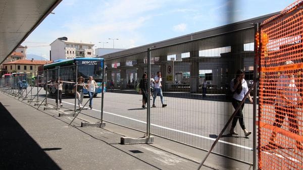 Il cantiere è sorto all’alba di venerdì. Le transenne ordinate «chiudono» la banchina, la segnaletica orizzontale sull’asfalto è ancora fresca e offre indicazioni ai pedoni. La stazione delle autolinee sta iniziando a cambiare volto.
