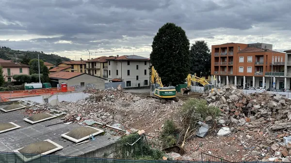 L’intervento Dopo la realizzazione di piazza delle Gemme, rase al suolo le ex medie affacciate sull’ex provinciale 91 Al loro posto sorgerà un complesso di appartamenti, negozi e uffici. Nell’area anche una sessantina di posti auto