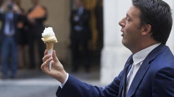 Quel gelato non è da Renzi. Far venire il carrettino dei coni nel cortile di palazzo Chigi e offrire un «crema e banana» ai giornalisti mettendo in mostra un campionario di smorfie che neanche Charlot, la dice lunga sulla dissimulazione forzata di uno sberlone.