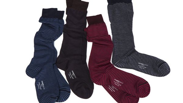 Materiali diversi: felpa, cotone elasticizzato con stampe jacquard, flanella e jersey. Fanno parte della nuova linea Homme/Wear Perofil tute, pigiami, pantaloni da casa, un piccola capsule di intimo e delle calze. COn un apio che si fa anche reversibile, in attesa di brevetto.