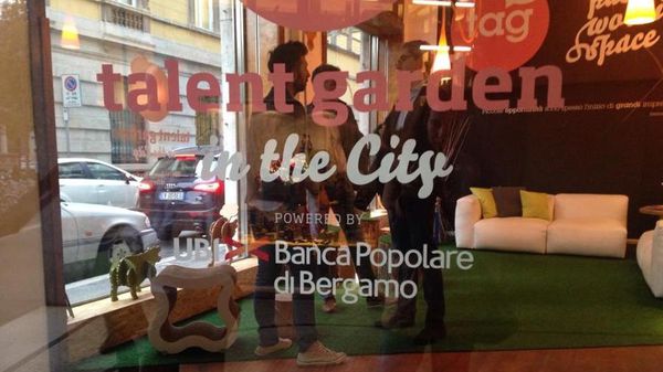 Si sono seduti su dei simil tronchi d’albero, rivisitazione di un giardino, questa volta però di idee da far crescere. Questo spazio, infatti, è stato realizzato in pieno centro a Bergamo, in un’area su due piani tra un calcio balilla, sculture in legno colorato (di Kube Design) e dieci scrivanie.