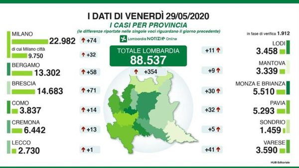 Il report fornito dalla Regione Lombardia di venerdì 29 maggio: negli ospedali ci sono 82 letti in più occupati.