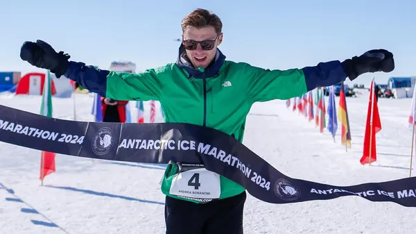 Lo scorso 13 dicembre, con un tempo di 3 ore, 23 minuti e 37 secondi, il bergamasco Andrea Bonanomi ha vinto l’Antarctic Ice Marathon, la maratona più fredda del mondo. Prossima sfida è la 777: sette maratone in sette continenti in sette giorni.
