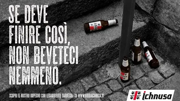 (ANSA) - CAGLIARI, 12 APR - Il messaggio è forte: immagini in bianco e nero di bottiglie di vetro con il marchio di birra più noto della Sardegna abbandonate in strade o spiagge e una scritta a caratteri cubitali, "Se …