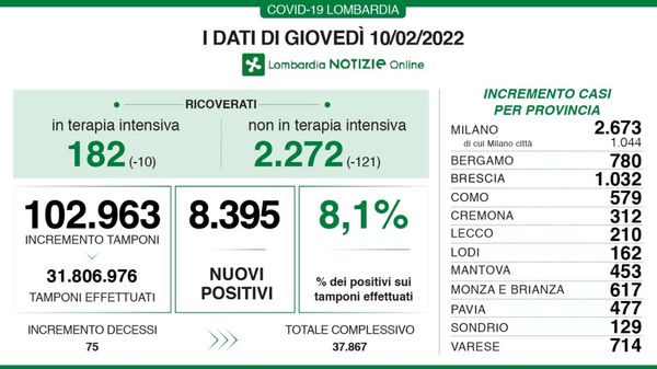 Sono in netto e costante miglioramento i dati relativi al Covid in Lombardia, anche se ritorna alto il numero dei decessi: 75 in un giorno.
