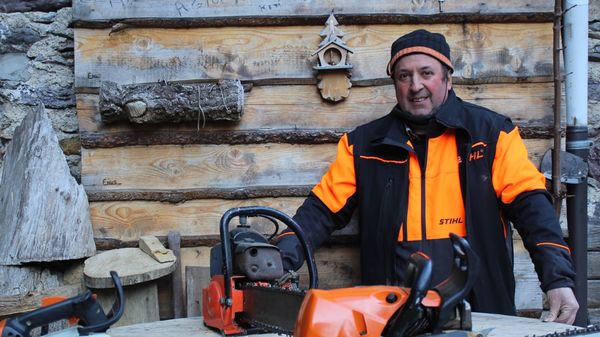 Da bambino, accompagnava il padre a tagliare la legna nei boschi della Val Brembana e lo osservava incantato. Oggi, trasforma ceppi e radici privi di vita in scoiattoli, uccelli, volti e cappelli d’alpino