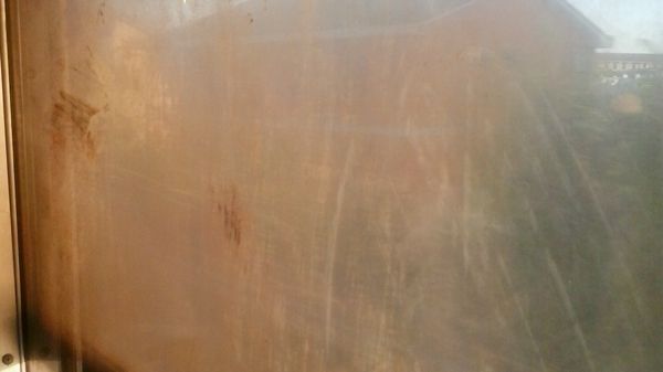 «Il mondo è grigio, il mondo è blu», cantava nel 1968 Nicola di Bari. Nel 2014 invece il mondo è... marrone. Almeno quello riservato ad alcuni pendolari bergamaschi grazie al «puntiglioso» servizio di pulizia di Trenord. Nell’immagine il vetro del treno delle 19.49 del 15 luglio da Milano Lambrate a Bergamo.